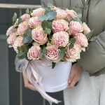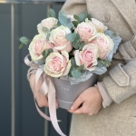 Букет Романс из роз, альстромерии, озотамнуса, эустомы и диантуса