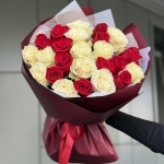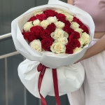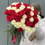 Букет Влюбленный взгляд из 101 красной и белой роз Выбор размера +3