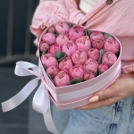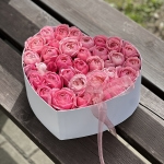 Коробка сердце Скарлет S из пионовидных кустовых роз сильвия пинк