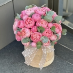 Коробка Скарлет S из пионовидных кустовых роз сильвия пинк